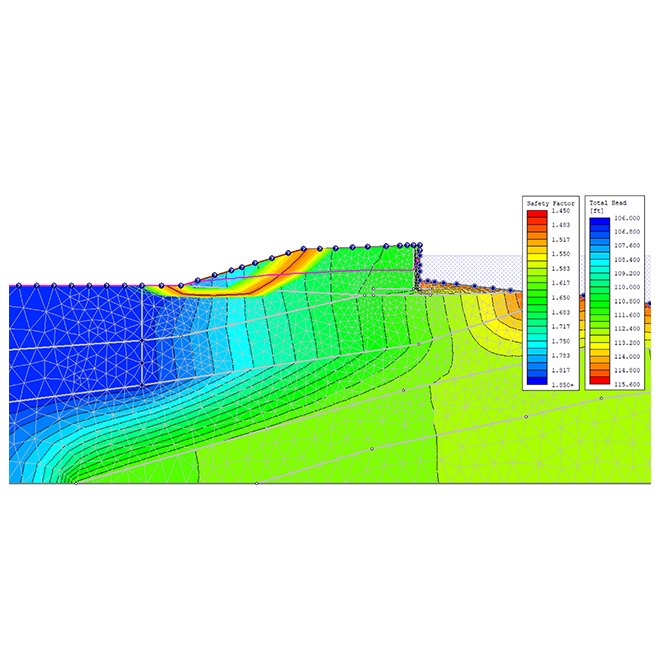 Analisar com precisão a estabilidade de taludes de barragens e aterros e realizar análises transientes de águas subterrâneas para compreender o impacto da variação da pressão da água nos poros.