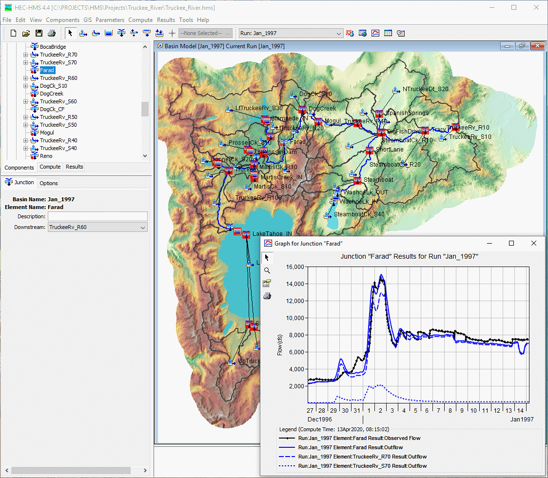 O Sistema de Modelagem Hidrológica (HEC-HMS) foi projetado para simular os processos hidrológicos completos de sistemas de bacias hidrográficas dendríticas. O software inclui muitos procedimentos tradicionais de análise hidrológica, como infiltração de eventos, hidrogramas unitários e propagação hidrológica. O HEC-HMS também inclui procedimentos necessários para simulação contínua, incluindo evapotranspiração, derretimento de neve e contabilização da umidade do solo. Recursos avançados também são fornecidos para simulação de escoamento superficial em grade usando a transformação linear quase distribuída de escoamento superficial (ModClark). Ferramentas de análise suplementares são fornecidas para otimização do modelo, previsão de vazão, redução de profundidade-área, avaliação da incerteza do modelo, erosão e transporte de sedimentos e qualidade da água.